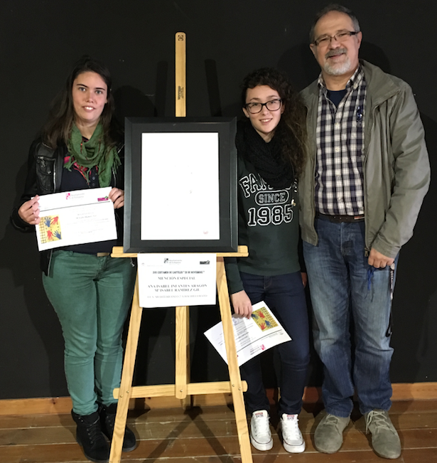 El pasado martes 24 de noviembre tuvo lugar la entrega de los premios a los alumnos galardonados de distintos centros educativos de Estepona, del concurso de carteles contra la Violencia de Género, convocado en su décimo séptima convocatoria por la Delegación de la Mujer de Ayuntamiento de Estepona. De nuestro centro, las alumnas premiadas con una Mención Especial han sido Ana Isabel Infantes y María Isabel Ramírez, las dos de 2º bachiller A. El jurado destacó en la entrega de premios la sensibilidad y acierto con la que las alumnas han justificado su proyecto artístico.