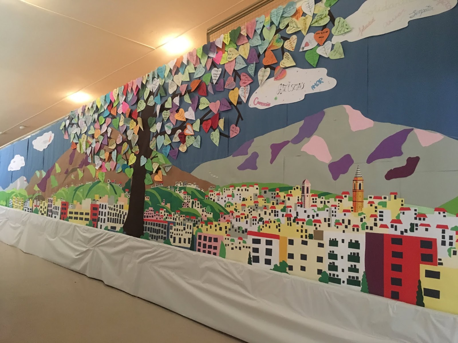 Como material de apoyo hemos trabajado, desde tutorías y departamentos, materiales en forma de artículos de prensa y documentales del programa AulaDcine pero siempre desde el punto de vista de los jóvenes. La verdad es que todo ha tenido muy buena acogida, incluso comentan que se les ha hecho corto, como el documental de «Garbanzos con Azúcar», de Antonio Aguilar, o el documental sobre Yusra Mardini, la nadadora siria, o el vídeo sobre la acción de Cruz Roja en el Mediterráneo. Como ya va siendo costumbre, estamos elaborando un gran mural en la rampa con todas las reflexiones. En este enlace se puede ver un extenso reportaje fotográfico sobre la realización del mural.Ha tenido tan buena acogida que la directiva lo va a mantener para el curso que viene.