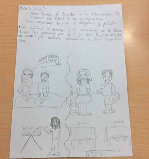 Y lo más sorprendente es que a tan corta edad, ellos mismos son conscientes de que algunos de esos artículos no se cumplen, es curioso cómo se acercan a tu mesa para preguntarte “pero maestra, ¿esto se cumple siempre?”. En este sentido mi alumnado de 1º B señala que “no todos somos iguales ante la ley”, o que “no todo el mundo tiene una vivienda digna”.